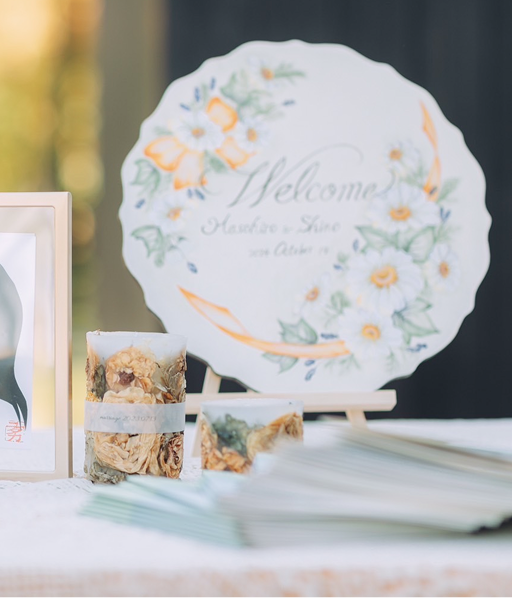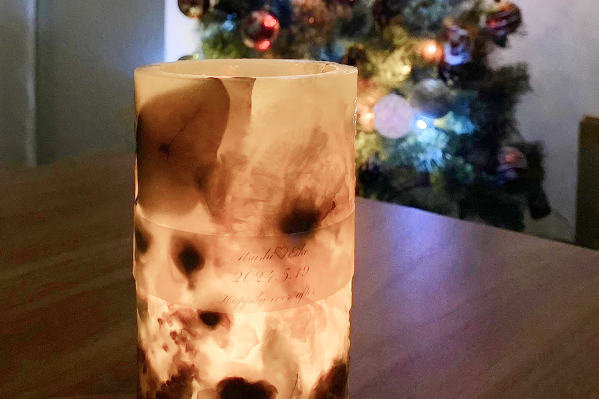 無事に結婚式を終え、ULUCA FLOWERさんのキャンドルもウェルカムスペースに飾らせていただき、とても良い思い出となりました!生花は残らないものだと思っていましたが、キャンドルとしてずっと形に残るってとっても素敵ですね!ありがとうございました。